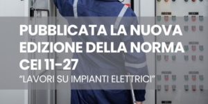 Sei in: Home1 / Nuova pagina (ID #3301)2 / Pubblicata la nuova edizione della norma CEI 11-27 “Lavori su impianti elettrici” – Ed. 6a 20253 / Pubblicata la nuova Edizione della Norma CEI 11-27 “Lavori su impianti e...